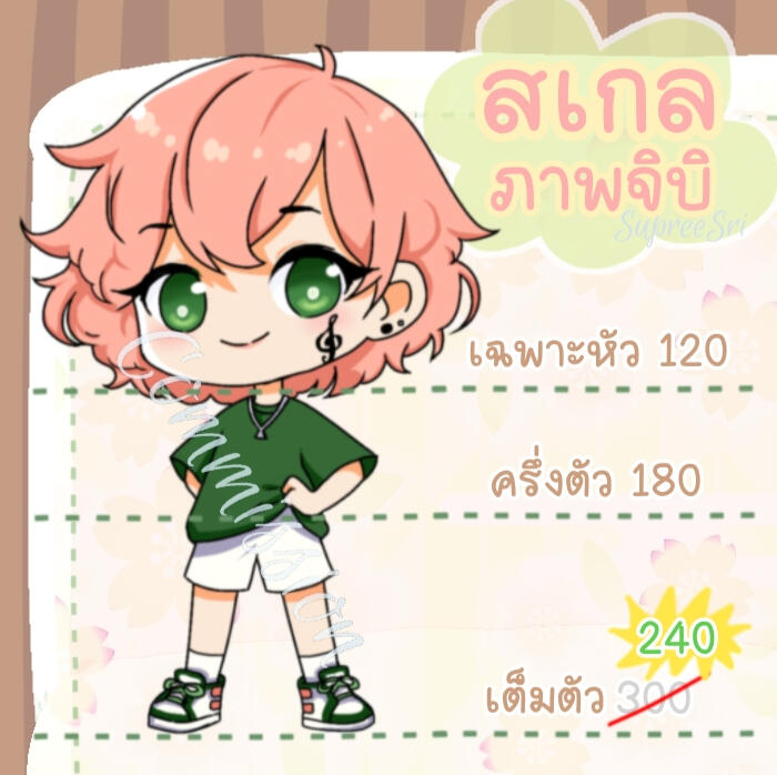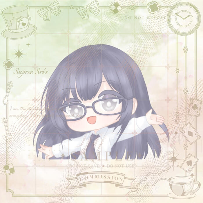 สวัสดีค่ะ ★ ชื่อพีค่ะ เป็นนัดวาดรูป วาดจิบิและสไตล์น่ารักสดใสเป็นหลัก แต่วาดแนวอื่นก็ได้น้าา~ 🥰 ขอบคุณที่สนใจงานเรานะคะ~ กดดูตัวอย่างงานที่เมนูข้างบนได้เลย 🍀