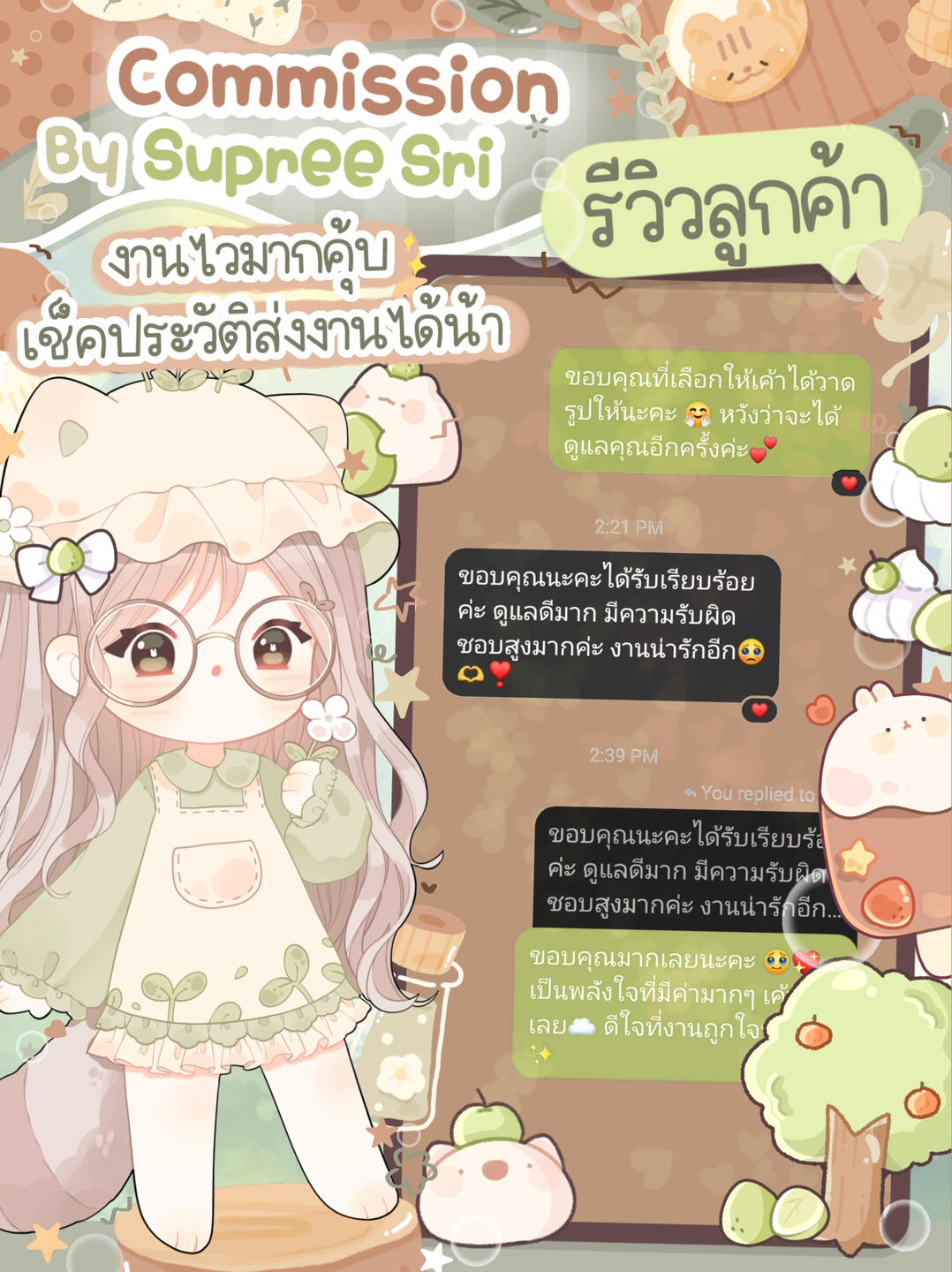 ไม่เคยสั่งปรึกษาได้ 💖 นักวาดใจดี น่ารัก ใจเย็น พูดเพราะ ช่วยบรีฟได้ค่ะ หรือให้เราคิดทั้งหมดเลยก็ได้ ไม่บวกท่ายาก อัพเดทงานทุกวันค่ะ
